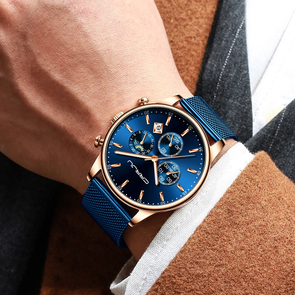 Kwaliteit: Gemaakt van hardlex glas. Het heeft Japan uurwerk dat zorgt voor een nauwkeurige tijd. De blauwe IP plating mesh band vervaagt niet. Geschikt horloge gewicht, super elegant en comfortabel om te dragen.